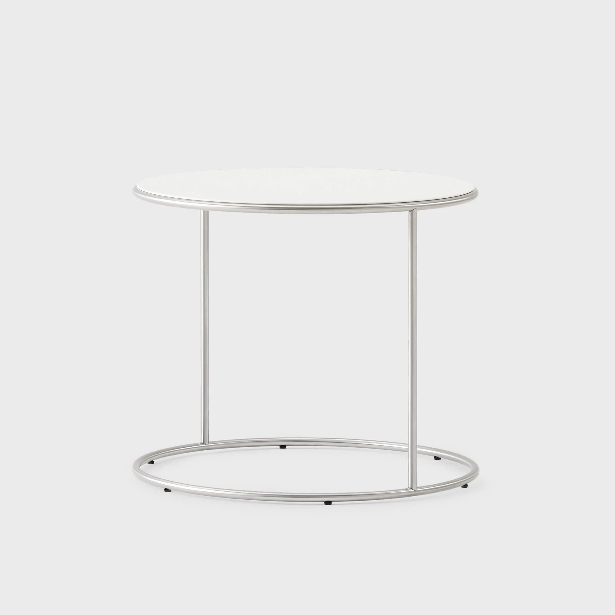 Geometry and lightness: these are the principles behind the Cannot table, a design that revolves around the concepts of equilibrium and instability. It's made of stainless steel with a lacquered top available in a matte finish. Thanks to its compact dimensions, this table is easy to store and transport when disassembled.