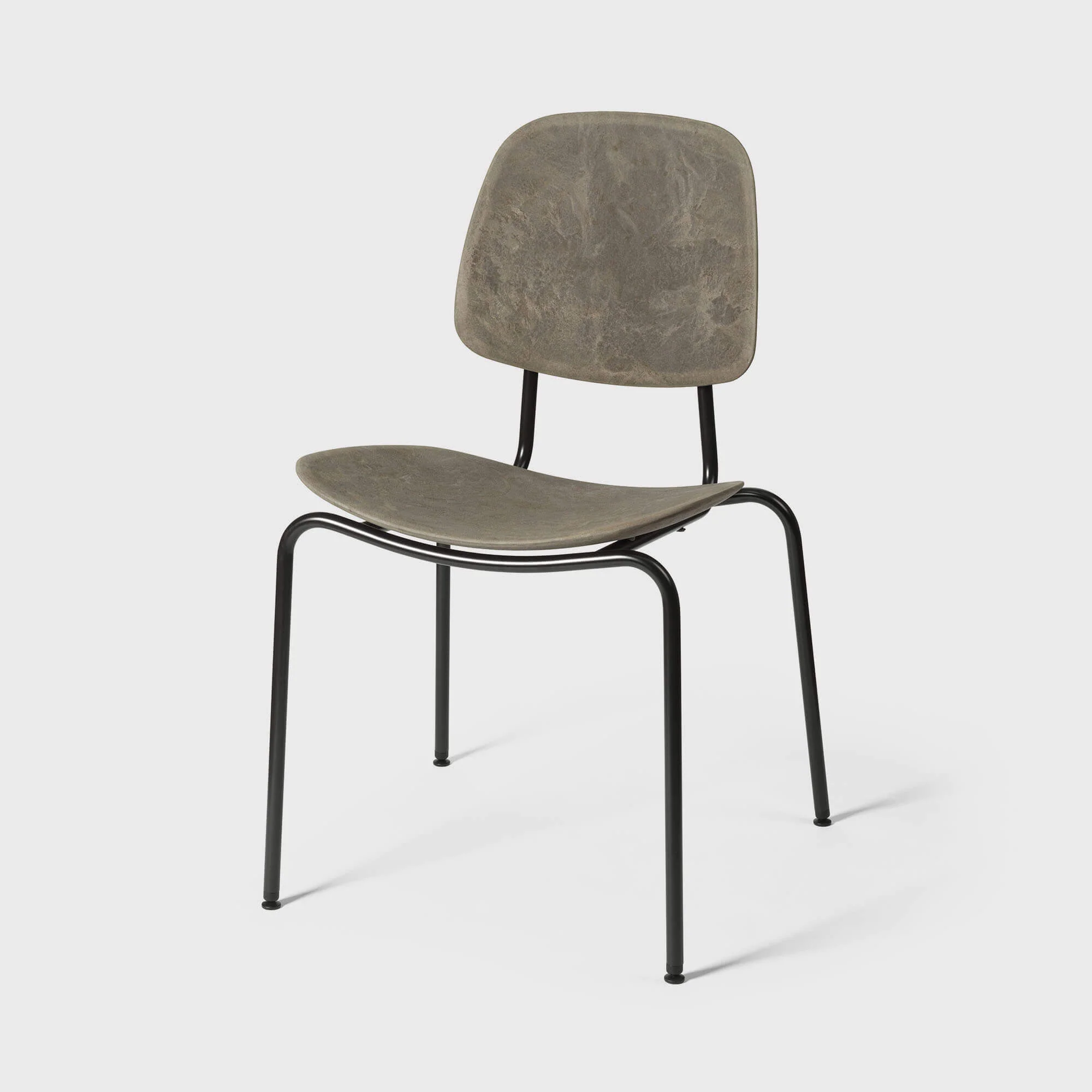 With a partly recycled steel base, this comfortable chair is designed with a seat and back made from Matek®. Created by Mater, this innovative material combines fiber-based waste materials with recycled plastic waste to create a contoured profile.