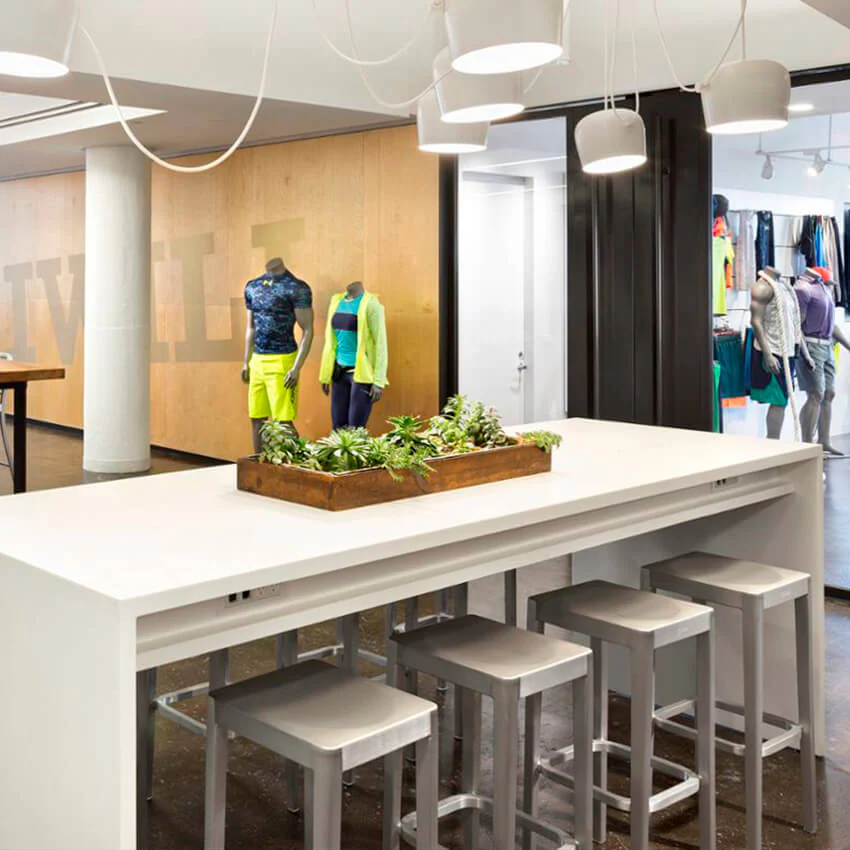 The Museum of Modern Art asked Philippe Starck and Emeco to make a simple stool for a MoMA exhibition. The result is one of Emeco’s best-selling stools. The shape — a circle in a square — is at once practical and sophisticated. Built by hand from recycled aluminum, it is lightweight, non-corrosive, fire resistant and exceptionally strong.